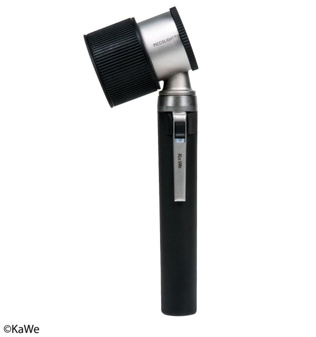 Beschreibung KaWe PICCOLIGHT D Dermatoskop Das Dermatoskop von KaWe PICCOLIGHT D dient der Untersuchung von Körperoberflächen und vergrößert ca. um das 10-fache oberflächige Hautstrukturen. In der täglichen Praxis können so einfach und schnell pigmentierte Hautveränderungen erkannt werden. Dies hilft vor allem bei der Früherkennung des malignen Melanoms. Das Dermatoskop ist dank dem Kunststoff-Batteriegriffes sehr leicht und somit auch flexibel in der Handhabung. Die integrierte Vakuum-Lampe sorgt dabei für eine gleichmäßige und intensive Ausleuchtung des zu untersuchenden Hautareals. Dabei sollte der Untersuchungsbereich in der Mitte des Untersuchungsbildes von ca. Ø 25 mm sein. 2,5 V Vakuum-Lampe10-facheVergrößerungFokuseinstellung von – 6 bis +…