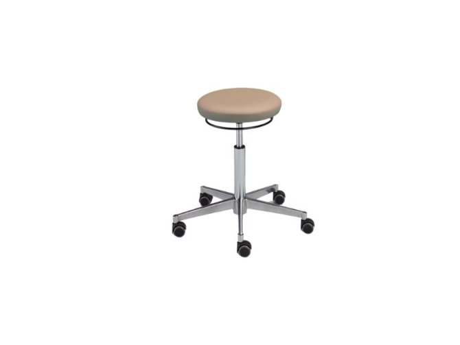 Beschreibung SCHMITZ Drehhocker Der SCHMITZ Drehhocker ist individuell für jede Praxis oder Klinik einsetzbar. Er ist gleichzeitig als Untersuchungshocker oder Bürostuhl verwendbar. Die bewährte Handringauslösung ermöglicht eine schnelle und sichere Höhenverstellung (500 mm – 690 mm) mittels anatomic-Lift-Gasfeder. Die Sitzfläche ist mit strapazierfähigem Kunstleder überzogen und sorgt für einen optimalen Sitzkomfort. Die gebremsten Doppelrollen eignen sich ideal für glatte Böden. Mit dem 5-strahligen Fußkreuz aus poliertem Aluminium ist der Drehhocker ein unentbehrlicher Helfer für die tägliche Routine. Sitzfläche: 350 mm ø Polsterstärke: 60 mm Sichere Arbeitslast: 135 kg Fußkreuz: 600 mm ø 5-strahliger Aluminiumfuß, poliert Säule verchromt Gebremste Doppelrollen, für…