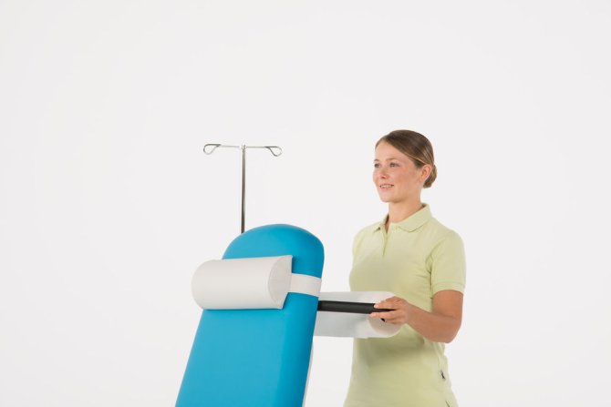 AGA Echo – Kardiographieliege Gestell reinweiß RAL9010 | türkis