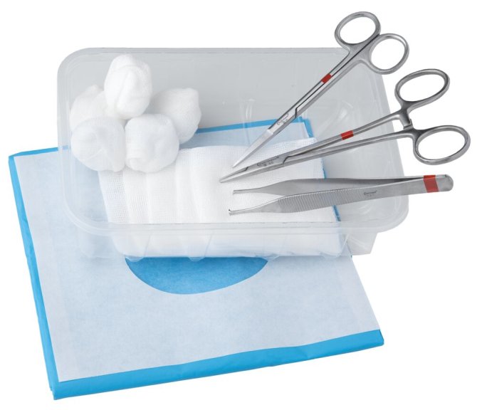 Beschreibung Fuhrmann – Einmal-Nahtset II – Sofort bereit mit sterilen Einmalprodukten Adson-Pinzette chirurgisch, fein, 12 cm langIrisschere, chirurgisch spitz/spitz, gerade, fein, 11 cm langHalsey-Nadelhalter, 13 cm langSchlinggazetupfer 20 x 20 cm, 5 StückMullkompressen 7,5 x 7,5 cm, 8-lagig, 5 StückSelbstklebendes Lochtuch 50 x 60 cm, 2-lagig, Lochgröße: 6 x 8 cm2-lagige Schutzunterlage zum Einschlag, 60 x 60 cmKunststoffschale 500 ml Volumen Das Nahtset II ist 3 Jahre steril lagerbar und beinhaltet ausschießlich Metall-Instrumente. Jedes Set komplett steril verpacktMetall-InstrumenteSofort einsatzbereit