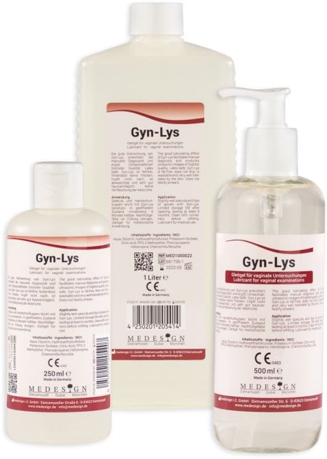 Beschreibung Medesign – Gleitgel Gyn-Lys für die gynäkologische Sonograhie und Untersuchung WasserbasisKeine KonservierungsstoffeDrei Verpackungsgrößen wählbarÖlfrei mit pflegendem GlycerinpH-Wert: 3,8 bis 4,1 für hohe HautverträglichkeitKeine Verfälschung von zytologischen Proben