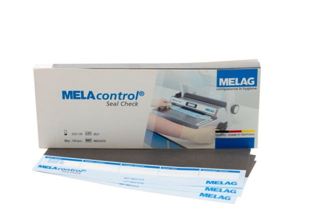 Beschreibung MELAG – MELAcontrol® Seal Check -Qualitätskontrolle beim Folieneinsiegeln Nach der Aufbereitung von Mehrweg-Instrumenten ist es von höchster Priorität, die Instrumente sicher steril zu versiegeln. Damit die innere Folienschicht korrekt verschmilzt, ist eine routinemäßige Kontrolle der Siegelnähte erforderlich. Ein validiertes Verfahren ist mit dem MELAcontrol® Seal Check von MELAG möglich, der nach der Medizinprodukte-Betrieberverordnung für eine sichere Haftung auf dem Papier sorgt. Sofern auf dem speziellen Druckmuster ein Kontrast sichtbar wird, ist dies ein Indikator für eine qualitativ saubere Siegelnaht. Zur wöchentlichen Routineprüfung Ihres Foliensiegelgerätes und zur Dokumentation des Ergebnisses Prüfung der Siegelnahtfestigkeit Nicht ausreichende Siegeltemperaturen, verschlissene Siegelschienen oder mangelnder…