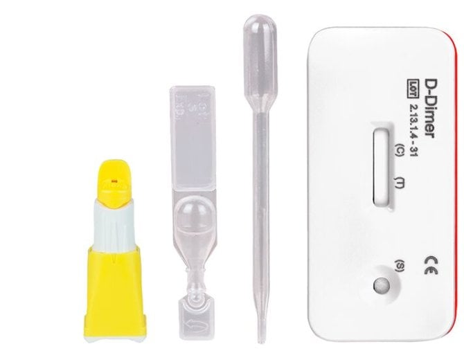 Cleartest D-Dimer – Zuverlässiger Bluttest für die Diagnose von Thrombose und Lungenembolie Der Cleartest D-Dimer ist ein qualitativ hochwertiger Test, der eine Vielzahl von potenziell ernsten Gesundheitszuständen wie Thrombose, Lungenembolie, übermäßige Blutgerinnung und sogar bösartige Tumore erkennen kann. Wenn es um Ihre Gesundheit geht, ist eine professionelle und zuverlässige Diagnose unerlässlich. Hauptmerkmale: – Schnelle und zuverlässige Testergebnisse in nur 10 Minuten – Erfordert nur eine kleine Blutmenge für die Durchführung – Einfach zu handhabende Einzeltests Vorteile des Cleartest D-Dimer: – Praktisches Instrument zur Ausschlussdiagnose von Lungenembolie, tiefen Venenthrombosen und disseminierter intravasaler Koagulopathie – Hilft bei der rechtzeitigen Erkennung ernster Gesundheitsprobleme – Unterstützt Ärzte bei der schnellen Einleitung geeigneter Behandlungsmaßnahmen In Situationen wie akutem Thoraxschmerz und Atemnot kann der Cleartest D-Dimer lebensrettende Informationen liefern. Vertrauen Sie auf die Genauigkeit und Zuverlässigkeit dieses Tests, um schnell Klarheit über Ihre Gesundheit zu erhalten. Der Cleartest D-Dimer – Ihr verlässlicher Partner für eine professionelle und präzise Gesundheitsüberwachung. Kaufen Sie jetzt und sorgen Sie für Ihre Sicherheit und Ihr Wohlbefinden.