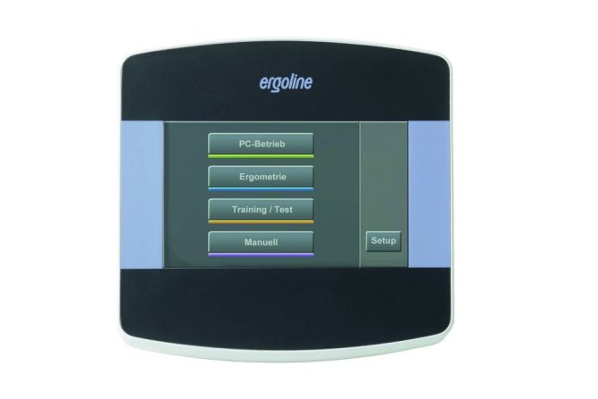 Beschreibung ergoline – Bedienfeld Farb-touch zu ergoselect 4 M/5 M – Die Option mit 10 Programmen Die modulare ergoline Premium-Ergometer-Serie ergoselect 4/5 vereint modernste Technologie, hochwertige Materialen und dezentes, zeitloses Design mit einem überzeugenden Gesamtkonzept. Es besitzt exzellente Eigenschaften und ermöglicht die passende Konfiguration für den Anwender. 10 integrierten Ergometrie-Programmen10 integrierten, frei programmierbaren TrainingsprogrammenLCD-Display Mit der Bedieneinheit erhält der Arzt alle wichtigen Informationen auf einen Blick. Die Farb-/Touch-Bedieneinheit Typ „T“ ermöglicht die PC-/EKF-Ansteuerung, die Ergometrie und den manuellen Betrieb. Das Farb-LCD-Display besticht durch eine hervorragende Auflösung und ist selbst bei schlechten Lichtverhältnissen sehr gut ablesbar. Zusätzlich beinhaltet das optionale Bedienfeld…