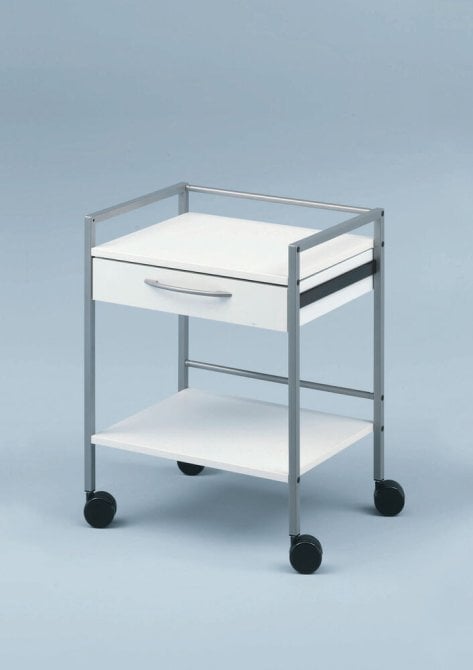 Der SCHMITZ Vielzwecktisch medi-net grauweiß ist eine vielseitige Lösung für den Einsatz in Praxen und Kliniken. Hergestellt aus hochwertigem pulverbeschichtetem Vierkantrohr, zeichnet sich dieser Gerätetisch durch extreme Stoß- und Kratzfestigkeit aus. Die Schublade verfügt über kugelgelagerte Präzisionsschienen, die auch hohen Belastungen standhalten. Die Tischplatte, der Einlegeboden und die Schubladenblende bestehen aus leicht zu reinigendem weißem Kunststofffunier. Mit einem pulverbeschichteten Bügelgriff ausgestattet, bietet dieser Tisch nicht nur Funktionalität, sondern auch ein ansprechendes Design. Der SCHMITZ Vielzwecktisch medi-net grauweiß ist in verschiedenen Größen erhältlich: 450×750 mm, 75 mm und 750 mm. Alle Varianten teilen die gleichen hochwertigen Materialien und Eigenschaften, die Langlebigkeit und Leistungsfähigkeit garantieren. Die vier großen Doppelrollen (ø 75 mm) machen diesen Gerätewagen äußerst flexibel und leicht zu bewegen. Kunden wählen diesen Vielzwecktisch aufgrund seiner Robustheit, Funktionalität und einfachen Reinigungsmöglichkeiten. Die vielfältigen Größenoptionen bieten die Flexibilität, um den Tisch an die jeweiligen Anforderungen anzupassen. Mit dem SCHMITZ Vielzwecktisch medi-net grauweiß erhalten Kunden ein zuverlässiges und praktisches Möbelstück für den medizinischen Bereich, das höchsten Ansprüchen gerecht wird.