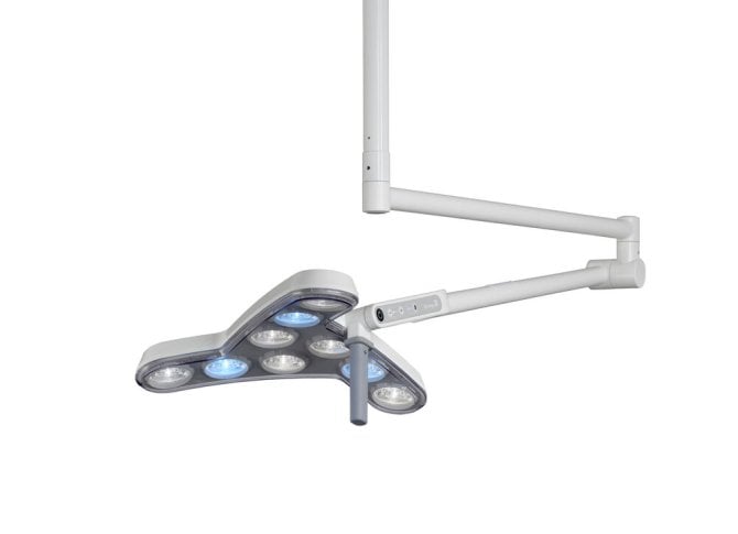 Die Derungs TRIANGO FOKUS 100-3 LED Klein-OP-Leuchte 3 C Deckenmodell bietet eine herausragende Beleuchtungslösung für medizinische Anwendungen. Mit einer Beleuchtungsstärke von 100.000 Lux bei 1 Meter Abstand und drei wählbaren Farbtemperaturen (3700 / 4300 / 4700 Kelvin) sorgt sie für ein flimmerfreies und homogenes Lichtfeld mit einer exzellenten Farbwiedergabe. Die hochwertigen LEDs erzeugen praktisch keine Wärmeabstrahlung, was ideal für den Einsatz im medizinischen Umfeld ist. Diese OP-Leuchte zeichnet sich durch ihre hygienische Folientastatur, den vollständig geschlossenen Leuchtenkopf und die einfache Reinigung aus. Der Handgriff ist sterilisierbar und das Gehäuse besteht aus langlebigem Polyamid. Dank des Feder-Gelenkarmsystems und der 360°-Bewegungsmöglichkeit kann das Licht präzise positioniert werden, um den Anforderungen verschiedener medizinischer Fachbereiche gerecht zu werden. Erhältlich in verschiedenen Varianten wie 338xcm, 120xcm, Red, Deckenmodell und Modell e, bietet die Derungs TRIANGO FOKUS 100-3 LED Klein-OP-Leuchte Vielseitigkeit und Anpassungsfähigkeit. Kunden wählen dieses Produkt aufgrund seiner herausragenden Lichttechnik, Ergonomie, einfachen Bedienung und langlebigen Konstruktion. Mit einem Red Dot Design Award ausgezeichnet, ist diese Leuchte nicht nur funktional, sondern auch ein ästhetischer Blickfang in medizinischen Einrichtungen. Wählen Sie die Derungs TRIANGO FOKUS 100-3 für eine professionelle und zuverlässige Beleuchtungslösung in verschiedenen medizinischen Anwendungen.