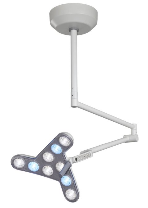 Der Derungs TRIANGO Fokus 130-3 C Deckenmodell ist eine herausragende LED-Operationsleuchte, die für präzise chirurgische Eingriffe entwickelt wurde. Mit einer beeindruckenden Beleuchtungsstärke von 130.000 Lux bietet sie optimale Lichtverhältnisse für medizinische Einrichtungen. Die flexible Einstellung der Lichttemperatur auf drei Stufen (3700, 4300 und 4700 K) ermöglicht eine individuelle Anpassung an die spezifischen Anforderungen des Eingriffs. Dank der Energieeffizienzklasse A+ ist die TRIANGO Fokus nicht nur leistungsstark, sondern auch umweltfreundlich, was zu niedrigeren Betriebskosten und einem geringeren ökologischen Fußabdruck führt. Das benutzerfreundliche Design mit einer intuitiven Folientastatur ermöglicht eine präzise Steuerung der Lichtfunktionen, was besonders während kritischer Eingriffe von Vorteil ist. Das Gehäuse aus leicht zu reinigendem und desinfizierbarem Polyamid bietet zusätzlichen Schutz vor Staub und Spritzwasser mit den Schutzarten IP 20 (Gehäuse) und IP 43 (Leuchtenkopf). Die gemeinsamen Merkmale aller Varianten des Derungs TRIANGO Fokus 130 umfassen eine hohe Lichtleistung von 130.000 Lux bei einem Abstand von 1 Meter, eine exzellente Farbwiedergabe mit einem RA-Wert von über 96, ein fokussierbares Beleuchtungsfeld von 16, 20 und 25 cm sowie das innovative TENO-Armsystem für positionssicheres Schwenken bis 110 Grad. Kunden wählen dieses Produkt aufgrund seiner hervorragenden Lichtqualität, Energieeffizienz, Benutzerfreundlichkeit und dem hygienischen Design. Das Derungs TRIANGO Fokus 130-3 C Deckenmodell ist die ideale Wahl für medizinische Einrichtungen, die höchste Standards in der chirurgischen Beleuchtung setzen.