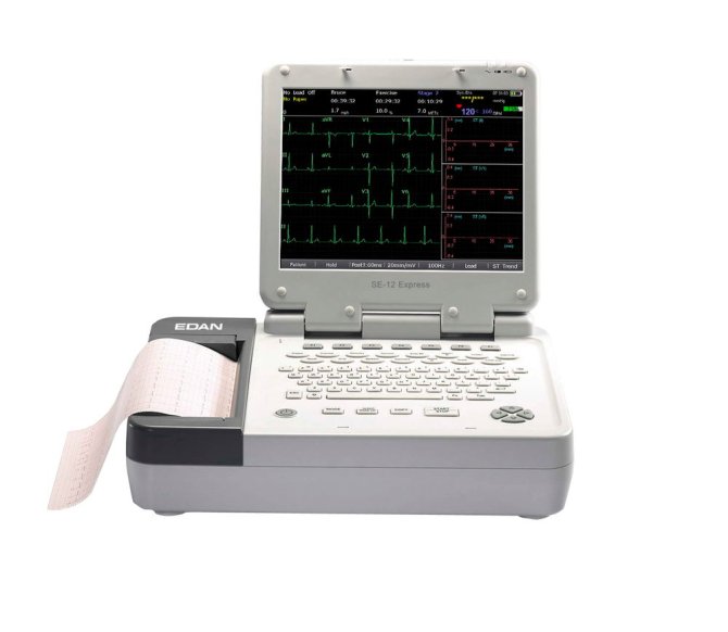 Die Edan SE-12 Express 12-Kanal-EKG-Geräte bieten eine zuverlässige Leistung und erfüllen die hohen Anforderungen medizinischer Praxen. Mit einer alphanumerischen Tastatur für schnelle Eingaben und einer einfachen Ein-Tasten-Bedienung für optimierte Workflows ermöglichen sie eine effiziente Nutzung. Der faltbare 12,1-Zoll-Farb-Touchscreen ermöglicht das Einfrieren und Überprüfen von Echtzeit-EKGs. Die Geräte verfügen über einen autoritativen Glasgow-Algorithmus, der eine präzise EKG-Analyse unter Berücksichtigung von Patienteninformationen wie Alter, Geschlecht und Ethnie ermöglicht. Die SE-12-Serie zeichnet sich durch eine hohe Speicherkapazität von bis zu 800 EKGs aus und verfügt über eine eingebaute, wiederaufladbare Batterie für den täglichen Einsatz. Mit einer Bandbreite von 0,01 Hz bis 300 Hz gemäß den Empfehlungen der American Heart Association bieten diese Geräte genaue klinische Leistungen für pädiatrische und erwachsene Patienten. Die Daten können über LAN oder RS-232 auf einen PC übertragen werden, und der EKG-Bericht steht im PDF-Format im A4-Format zur Verfügung. Erhältlich in verschiedenen Größen und Farben, sind die Edan SE-12 Express EKG-Geräte die ideale Wahl für medizinische Fachkräfte, die eine zuverlässige und benutzerfreundliche Lösung für die EKG-Diagnostik suchen. Mit ihrer hochwertigen Technologie, präzisen Interpretationen und benutzerfreundlichen Funktionen sind diese Geräte darauf ausgelegt, den Arbeitsablauf in der Praxis zu optimieren und eine genaue Diagnose zu ermöglichen. Wählen Sie die Edan SE-12 Express 12-Kanal-EKG-Geräte für vertrauenswürdige Leistung und professionelle Ergebnisse in der EKG-Diagnostik.