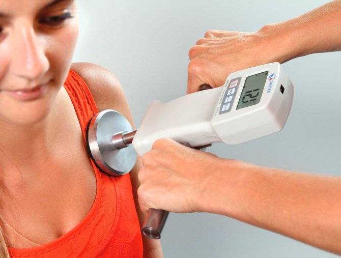 Beschreibung KERN – Runder Aufnehmer für Sauter Kraftmessgeräte Die Bestimmung von Muskelfunktionen und -kräften wird in vielen Bereichen der medizinischen Diagnostik eingesetzt. So unter anderem in der Orthopädie (zur Funktionsbestimmung des Bewegungsapparates), in der Physiotherapie (zur Wiederherstellung der Bewegungsfreiheit) sowie auch in der Ergotherapie (zur Behandlung von körperlichen Beeinträchtigungen). Auch im Sport kann die Messung der muskulären Kraftentfaltung trainingsbegleitend eingesetzt werden. In Verbindung mit einem Sauter Kraftmessgerät kann mit diesem punktuellen Aufleger die Kraft an bestimmten Körperstellen gemessen werden. Durch die flache und runde Fläche und der darauf liegenden Polsterung aus weichem Moosgummi, kann dieser Aufnehmer besonders gut im Bereich…
