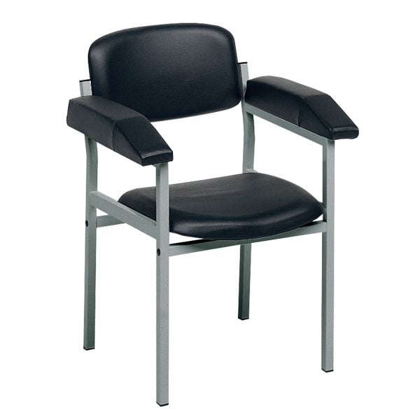 Blutentnahmestuhl: Qualitativ, Professionell, Zuverlässig, Praktisch Der Blutentnahmestuhl ist ein unverzichtbares Element in jeder Arztpraxis und bietet höchsten Komfort für Patienten. Mit seiner komfortablen Polsterung auf Sitzfläche und Rückenlehne ermöglicht er eine angenehme Sitzposition. Die keilförmigen Armauflagen sorgen für eine entspannte Armhaltung, um schmerzfreie Einstiche zu gewährleisten. Das pulverbeschichtete Vierkantrohr-Gestell verleiht dem Stuhl Stabilität und Langlebigkeit. Mit einer Tragkraft von bis zu 225 kg ist er für vielfältige Anwendungsbereiche geeignet. Hauptmerkmale: – Breite: 64,5cm – Höhe: 86,5 cm – Sitzfläche: 45,5 cm x 46,5 cm – Tragkraft: 225 kg – Gestell: Pulverbeschichtetes Vierkantrohr in Weißaluminium RAL 9006 – Sitz, Rücken und Armlehnen kunstlederbezogen in Schwarz Vorteile des Blutentnahmestuhls: – Komfortable Sitzposition für Patienten – Bequeme Armhaltung dank keilförmiger Armauflagen – Stabiles und leicht zu reinigendes Gestell – Hohe Tragkraft von 225 kg für vielseitige Anwendungen – Modernes Design und langlebige Materialien Insgesamt bietet der Blutentnahmestuhl eine professionelle und zuverlässige Lösung für die Blutentnahme in medizinischen Einrichtungen. Mit diesem praktischen Hilfsmittel können Ärzte effizient arbeiten und Patienten eine angenehme Erfahrung bieten. Investieren Sie in Qualität und Komfort für Ihre Praxis mit dem Blutentnahmestuhl.