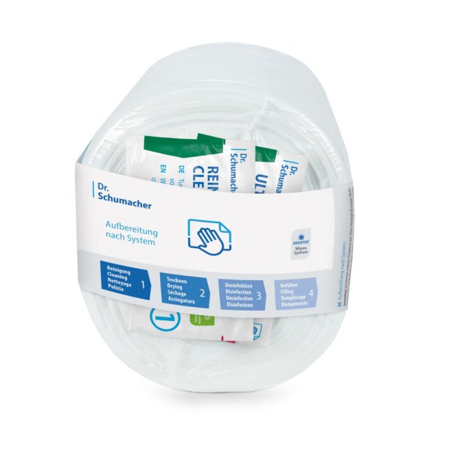 Die Dr. Schumacher Eco Wipes Vliestuchrollen und Spender Tücherrolle sind ein integraler Bestandteil des praktischen ECO WIPES Mehrweg-Vliestuchspendersystems, das für die Desinfektion und Reinigung von Medizinprodukten und Flächen entwickelt wurde. Diese ungetränkten Vliestücher können mit gebrauchsfertigem Schnelldesinfektionsmittel oder Desinfektionsmittelkonzentratlösungen verwendet werden. Jede Tücherrolle enthält DESOTEX® Aufbereitungstücher, die zur Reinigung des Spendereimers dienen, bevor sie mit einer neuen Tücherrolle befüllt wird. Die Matrix-Produkte sind in verschiedenen Größen und Farben erhältlich, um den individuellen Bedürfnissen verschiedener Anwender gerecht zu werden. Trotz der Variationen in Größe und Farbe teilen alle Varianten die Eigenschaften, fusselarm zu sein, eine einfache Entnahme der Tücher zu ermöglichen und einen sicheren Verschluss des Spenders zu gewährleisten. Kunden wählen die Dr. Schumacher Eco Wipes aufgrund ihrer hohen Qualität, Zuverlässigkeit und Effektivität bei der Desinfektion und Reinigung. Das Mehrwegsystem ist nicht nur umweltfreundlich, sondern auch kosteneffizient, da die Tücher nachgefüllt werden können, ohne den Spender jedes Mal ersetzen zu müssen. Mit einer Auswahl an Verpackungseinheiten und praktischen Funktionen sind die Dr. Schumacher Eco Wipes die ideale Lösung für hygienische Anforderungen in medizinischen Einrichtungen und anderen Bereichen, in denen Desinfektion und Reinigung oberste Priorität haben.