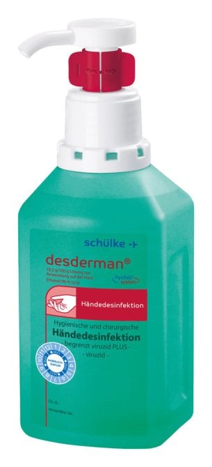 Beschreibung schülke Händedesinfektion desderman® Die farbstoff- und parfümfreie, alkoholische Händedesinfektion desderman® von schülke ist für die hygienische und sichere chirurgische Händedesinfektion geeignet. Sie hat aufgrund des Ethanolgehalts eine ausgeprägte viruzide und mikrobizide Wirksamkeit, wirkt begrenzt viruzid PLUS und inaktiviert Noroviren in nur 15 Sekunden. Das bewährte Rückfettung-System hat eine sehr positive Auswirkung auf die Hautverträglichkeit sowie den Schutz und die Pflege der Hände. Die Ausführungen für das hyclick® System werden mit einer integrierten Pumpe geliefert. Mit Hilfe des Click-Systems lassen sich die Flaschen schnell und einfach einsetzen. Der Non-Removal Schraubverschluss sorgt dafür, dass die Pumpe nicht wiederverwendet wird und sorgt…