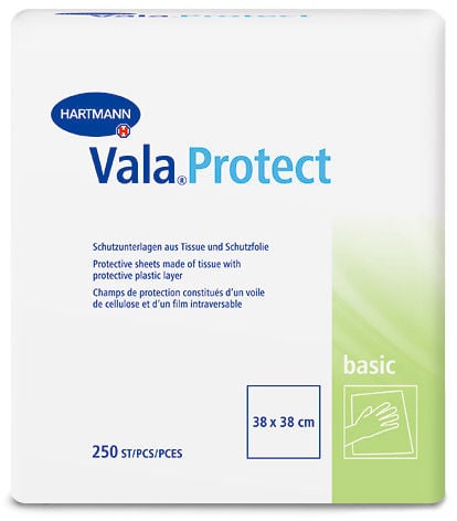 Beschreibung Hartmann Schutzunterlagen Vala Protect Die Einmal- Schutzlaken und –unterlagen Vala Protect von Hartmann sind optimal zum Abdecken von Matratzen, Liegen und Tragen geeignet. Sie bestehen aus einem gut saugenden Tissue mit einer undurchlässiger Folienunterseite. Die Vala Protect Schutzunterlagen von Hartmann dienen auch als Schutzunterlage auf Arbeitstischen, z.B. bei der Blutentnahme. Die vielseitigen Hartmann Vala-protect-Schutzlaken dienen der Reduzierung des Kontaminationsrisikos im Klinikbereich wie in der Pflegeeinrichtung. Sie bestehen aus gut saugfähigem Tissue mit nässeundurchlässiger PE-Folie auf der Unterseite. Der Laken fühlt sich weich und flauschig an, ist dabei jedoch strapazierfähig und reißfest. StrapazierfähigWeichGeschmeidigVielseitige SchutzlakenEinmal-ProduktVerschiedene Größen