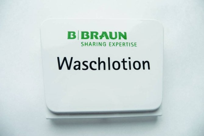 Der B. Braun Wandspender ELS plus 1.000 ml ist ein hochwertiger Spender für Händehygieneprodukte, der eine präzise Dosierung von Flüssigkeiten unterschiedlicher Viskosität ermöglicht. Mit einem Aluminiumgehäuse, das autoklavierbar ist, ist dieser Spender für handelsübliche 500 ml- und 1000 ml-Gebinde geeignet. Die einstellbare Kunststoffpumpen-Dosierung bietet Aushubmengen von 1,5 ml, 1,0 ml und 0,7 ml und eignet sich auch für die Förderung von Pflegelotionen. Der B. Braun Wandspender ELS plus ist mit einer flexiblen Dichtungskappe ausgestattet, um die Verdunstung der Flüssigkeiten zu verhindern, und wird mit 2 austauschbaren Clips für Desinfektions- oder Waschlotionsprodukte geliefert. Optional sind eine Auffangschale und eine Wandabschlussplatte als Zubehör erhältlich. Kunden wählen den B. Braun Wandspender ELS plus aufgrund seiner hygienischen Entnahmemöglichkeit, präzisen Dosierung, vielseitigen Einsatzmöglichkeiten und einfachen Reinigung. Dieser Spender bietet eine zuverlässige Lösung für die Bereitstellung von Desinfektions- oder Waschmitteln in verschiedenen Umgebungen. Verfügbar in der Variante Braun, ist dieser Wandspender die ideale Wahl für eine effektive und hygienische Händedesinfektion.