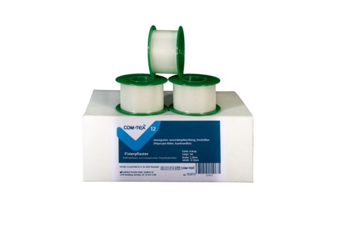 Beschreibung COM-TeX – Fixierpflaster – Fix fertig bei der Versorgung Das atmungsaktive und wasserdampfdurchlässige Fixierpflaster von COM-TeX besteht aus einer vorperforierten und transparenten Polyethylenfolie und ist zur Fixierung von Verbänden, Kanülen, Kathetern und Sonden hervorragend geeignet. Es lässt sich in sämtliche Richtungen leicht mit der Hand zerreißen ohne das zusätzlich eine Schere benötigt wird. Dies ermöglicht die schnelle und einfache Verbandfixierung. Das PU-Material lässt sich sehr leicht mit einem Kugelschreiber beschriften. Der Polyacrylat-Kleber ist sehr hautfreundlich, so dass auch bei empfindlicher Haut praktisch nie Irritationen entstehen. Atmungsaktiv und wasserdampfdurchlässigFixiert sicher und anhaltendIn alle Richtungen per Hand reißbarHautfreundlicher Polyacrylatkleber