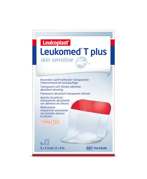 Beschreibung essity Leukomed® T plus skin sensitive – Steriler Post-OP Folienverband mit Wundauflage Der sanft klebende sterile Wundverband Leukomed® T plus skin sensitive kommt bei sezernierenden Wunden anwenderfreundlich zum Einsatz. Durch das speziell beschichtete Wundpad wird ein Verkleben mit der Wunde vermieden und ausreichende Wundruhe gewährleistet. Das Besondere: die Trägerfolie schützt nicht nur vor Bakterien und Viren, sondern ermöglicht aufgrund seiner Wasserfestigkeit auch die tägliche Hygiene, wie das Duschen. Leukomed® T plus skin sensitive ist besonders für sensible und geschädigte Haut geeignet. Schutz von post-operativen Wunden Besonders für empfindliche und geschädigte Haut Wasserdampfdurchlässig – verhindert Feuchtigkeitsansammlung Wasserfest Steril Schmerzarmer Verbandwechsel…